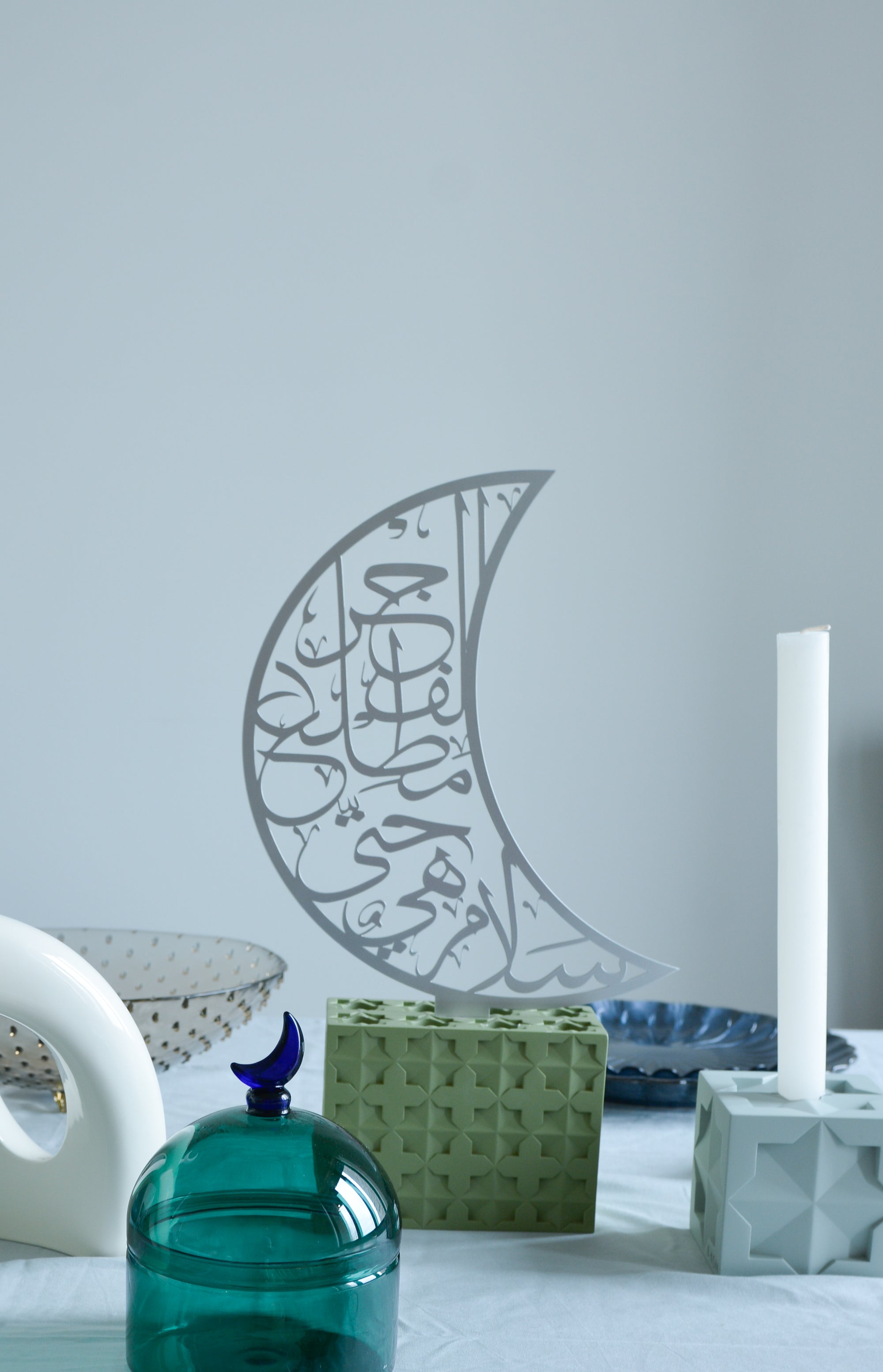 A wide selection of calligraphy signs, available in gold, silver, and black, ensures these pieces can be styled for any occasion and enjoyed year-round. Investing in one of our handcrafted sculptures unlocks endless possibilities: display it on its own, pair it with different signs throughout the year, or use it as a candle holder.
